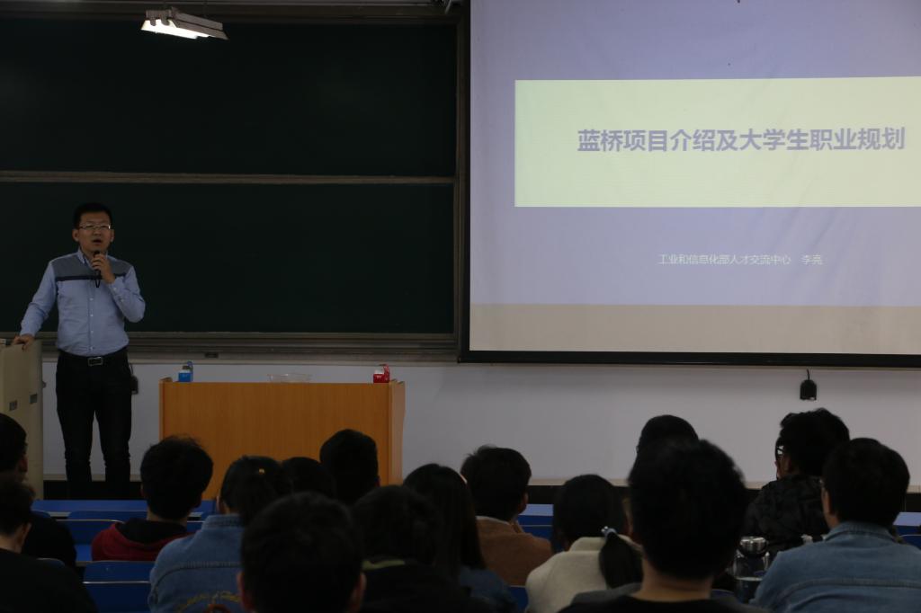 在三合三教室召开就业指导培训讲座,本次讲座主讲人为蓝桥项目工业和信息化部人才交流中心办公室主任李亮,全院在校生积极踊跃地参加了此次讲座。