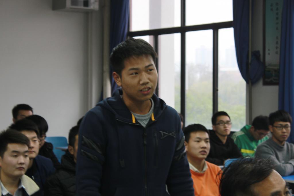 首先,团支书金鹏远带领大家简要回顾了中共十九大报告的内容,并与同学们积极互动,交流十九大精神学习心得。