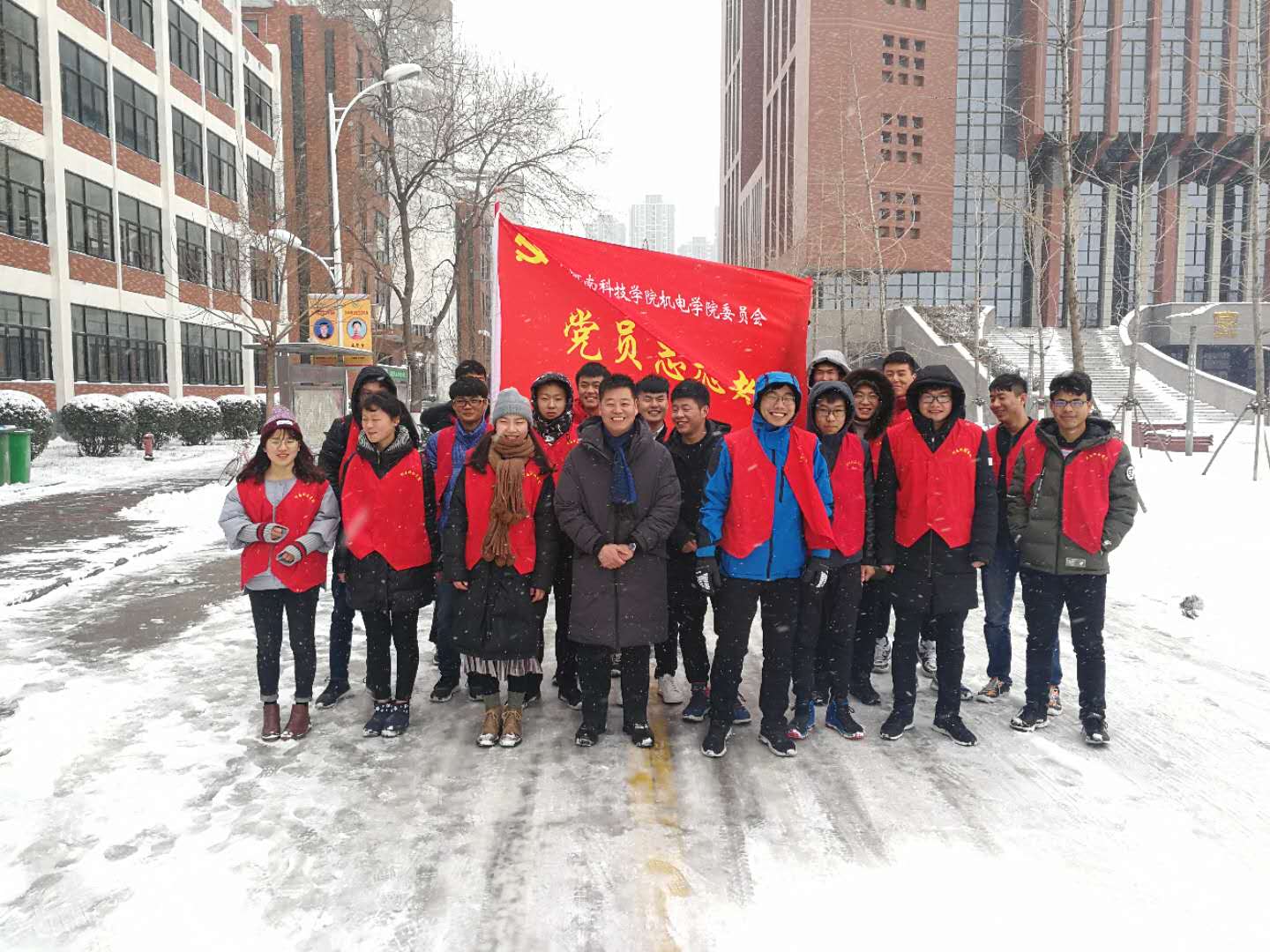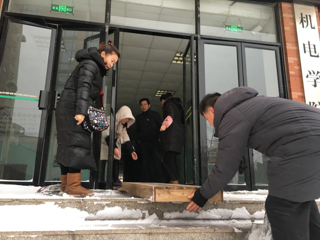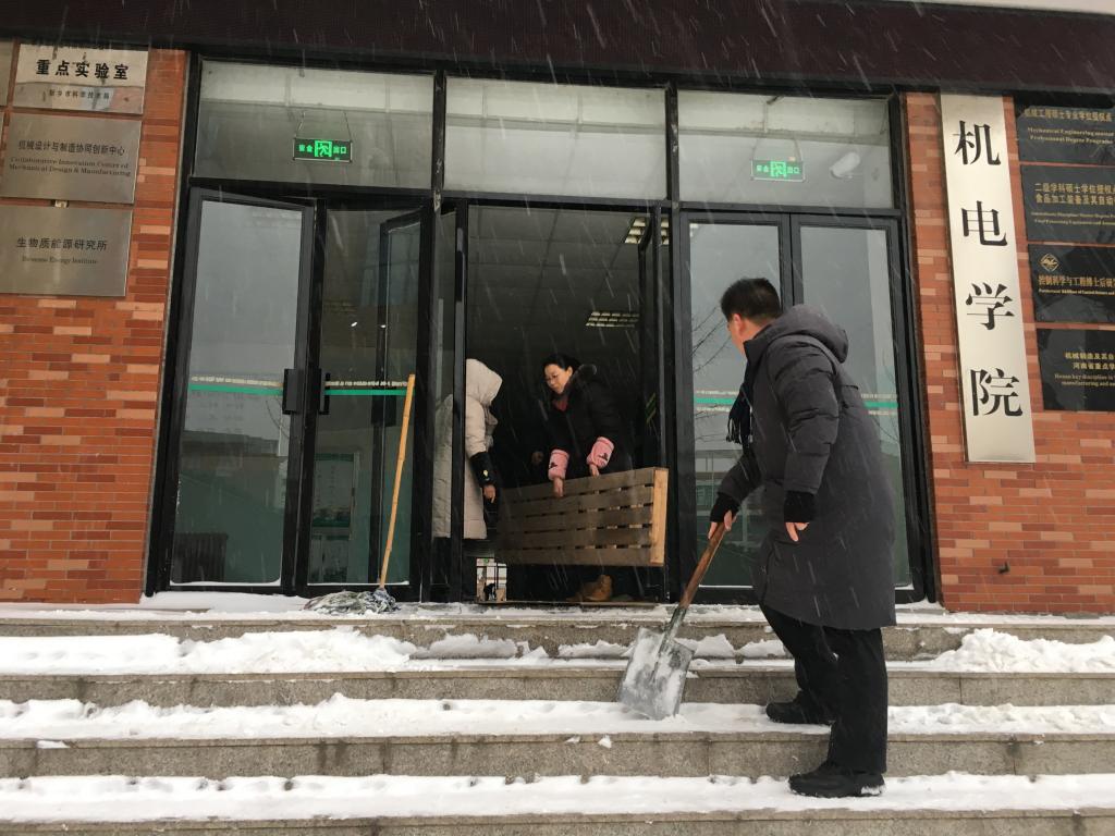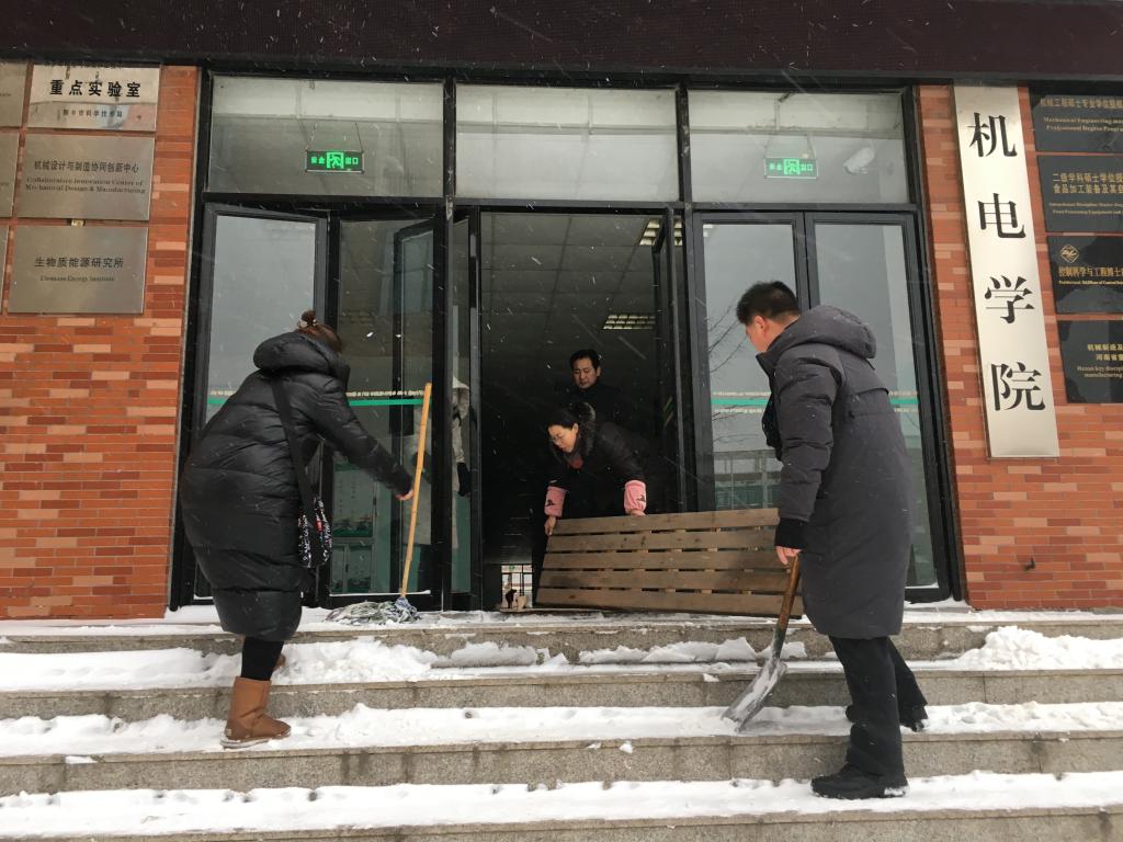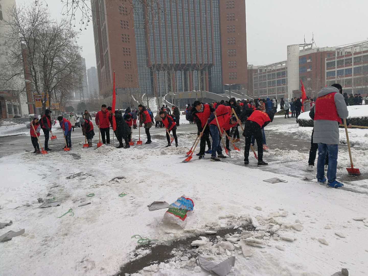 领导组织部分教师在学院周边开展除冰扫雪活动。