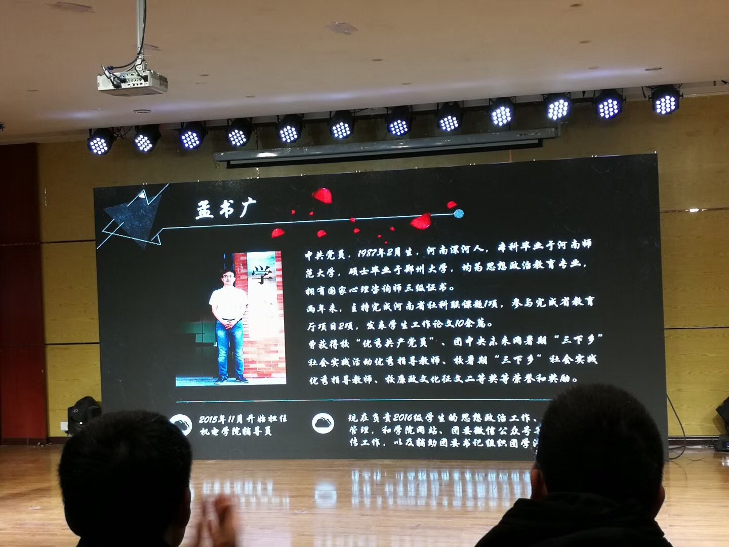 2018年1月23日下午,我校第六届辅导员职业能力大赛决赛在艺术学院音乐厅举行。党委学工部(处)、校团委等相关单位负责人及各学院党委副书记、全体辅导员一起观看了比赛。