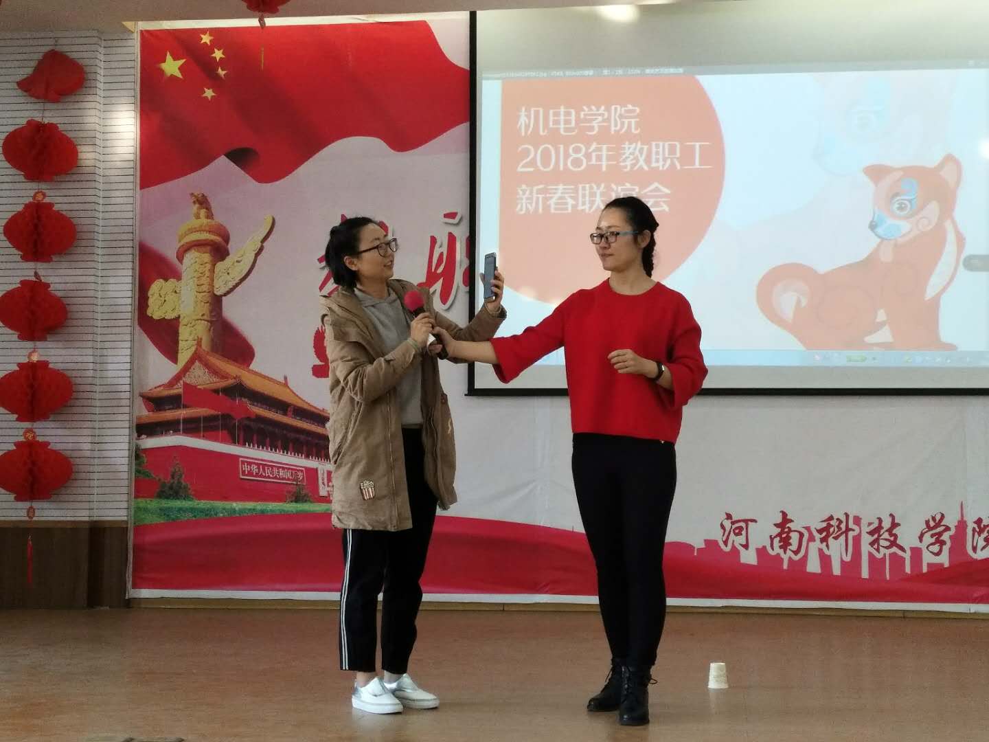 联谊会上,各位教师的歌曲、相声、游戏、乐器演奏等精彩节目轮番登场。机电教工的下一代、祖国的花朵贝勒小朋友的《街舞表演》,酷气十足;制图教研室万秀颖老师和齐光男老师的《小万小齐脱口秀》,赢得了台下阵阵欢呼;电工教研室的《挤眉弄眼吃饼干》,好看好玩好有意思;学工队伍带来的团体舞《Panama》,舞步简单好看,歌曲魔性洗脑,赢得了满堂喝彩;工会主席李印的《模仿秀》,赢得阵阵掌声;申冲老师的京剧《三家店》像一杯浓茶,韵味悠长......历时3个小时的联谊会在教职工大合唱《明天会更好》声中圆满落下了帷幕。