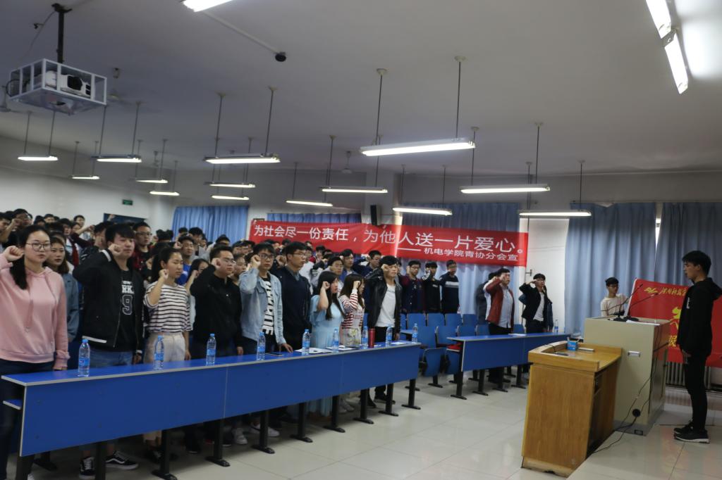 志愿者代表电气172的李泰森在发言时,呼吁同学们坚持志愿者精神,学会去传递爱心,无私奉献,不辱“志愿者”之名。随后,志愿者舒富涛带领大家郑重宣誓。誓词:“我愿意成为一名光荣的志愿者。我承诺:尽己所能,不计报酬,帮助他人,服务社会,践行志愿精神,传播先进文化,为建设团结互助、平等友爱、共同前进的美好社会贡献力量”。