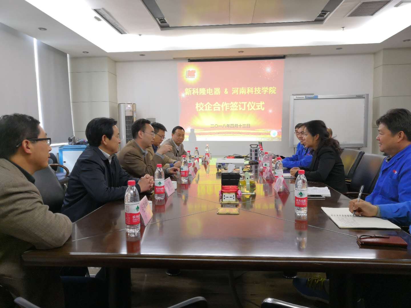 教学实习基地”挂牌仪式在河南科隆集团--河南新科隆电器有限公司举行。挂牌仪式由公司副总经理和强主持,公司总经理周丽萍、集团人力资源总监马炜、我校党委副书记杨松璋、特聘教授帅立国及91猫先生