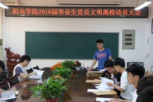 组织召开了2018届毕业生党员文明离校动员大会。辅导员申冲主持此次会议。