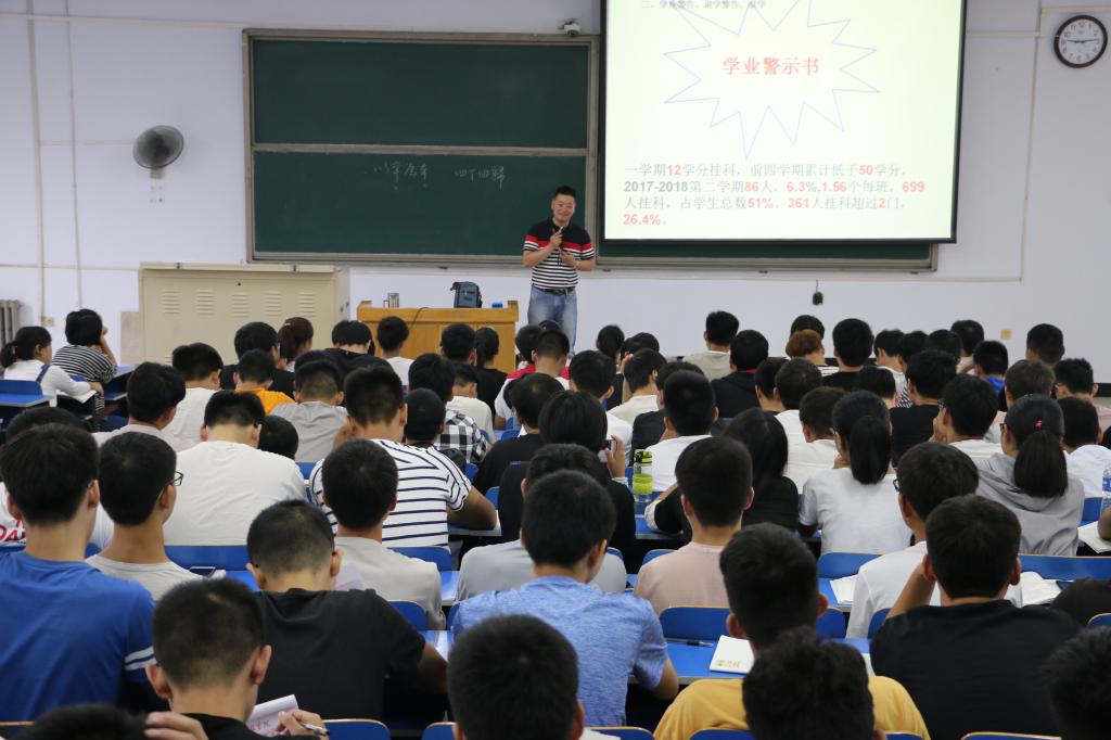 9月15日上午,91猫先生 党委书记樊跃峰、党委副书记李印分别为2018级新生做励志讲座。