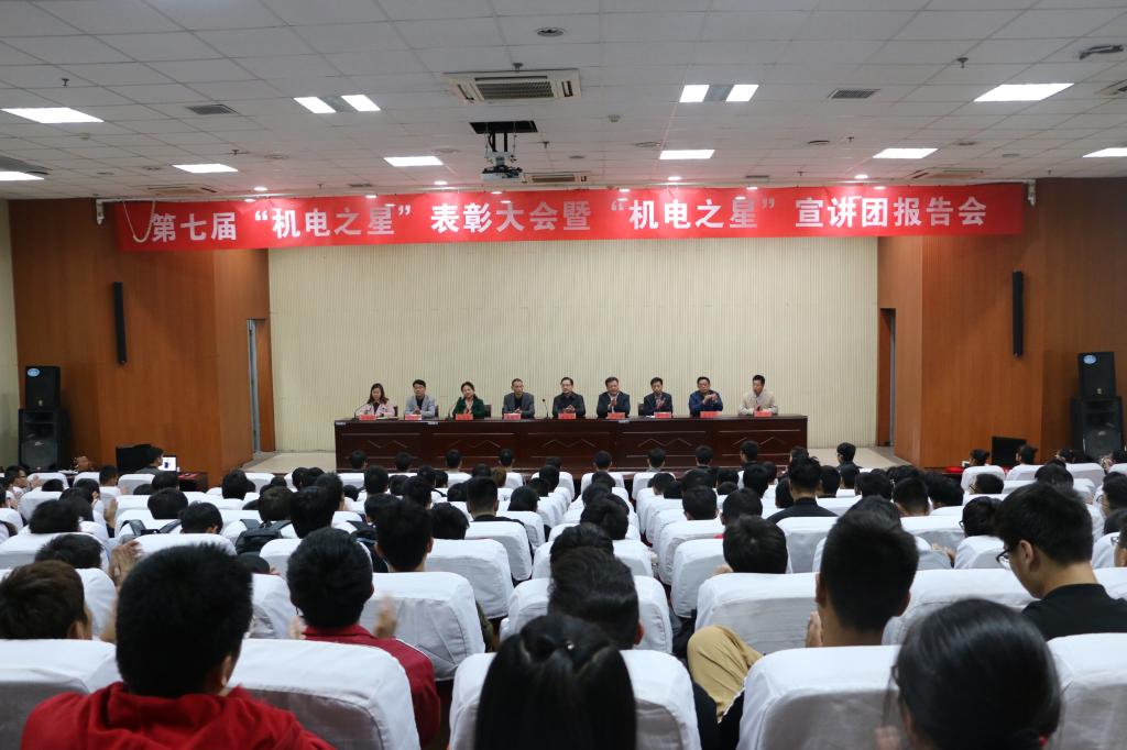 第七届“机电之星”表彰大会暨“机电之星”宣讲团报告会在新图书馆一楼报告厅隆重举行。校党委宣传部部长陈红卫、校团委书记于江傲、党委学工部副部长、学生处副处长郭超杰以及91猫先生