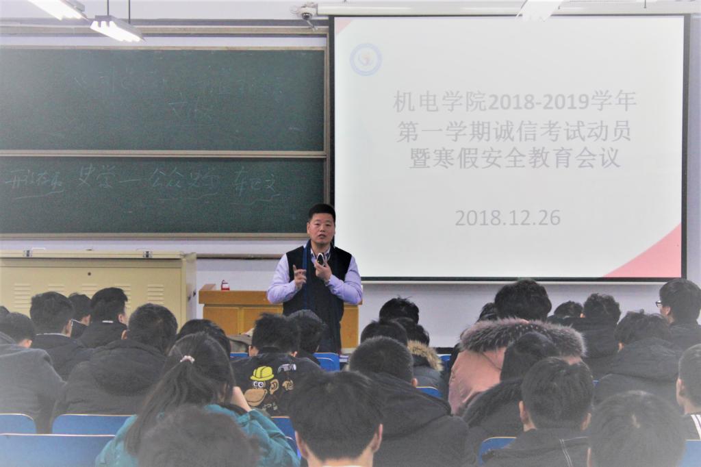 会议伊始,几位老师向全体学生宣读了《学生手册》中关于考试舞弊、学位证授予条件、补考及重修办法等的相关总则,并结合往年期末考试期间的典型案例阐述了诚信考试的重要性以及作弊的严重后果。希望同学们在备考过程中合理规划时间,端正心态,认真复习,考试过程中自觉遵守考场纪律,做到内诚于己,外信于人,发挥自己真正的实力,展现机电学子的风采与素质。