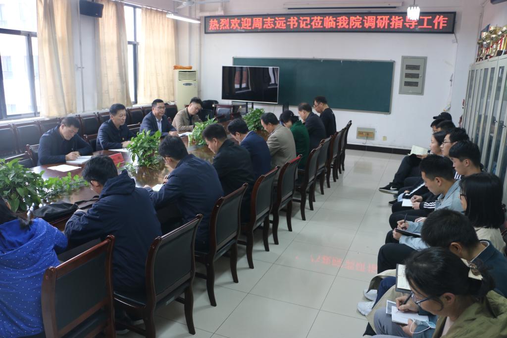 首先,周志远书记说明了调研的目的。他指出,学校作为“不忘初心、牢记使命”主题教育第二批单位,从9月11日动员会开始,已经进行了一个多月,这次调研主要是了解基层单位主题教育活动开展的如何?党建工作、党员先锋模范作用发挥的如何?同时听取大家对学院工作、机关作风建设、学校发展中亟需解决的问题的意见和建议,通过广泛调查研究,全面了解师生的所思所想,共同期盼,在全面掌握情况的基础上,创新工作思路,完善体制机制,整合各种资源力量,从而推动学校各项工作高质量发展。