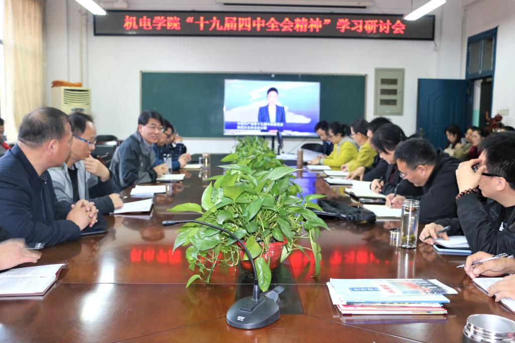 党委组织全体教职工在4304会议室学习研讨党的十九届四中全会精神。