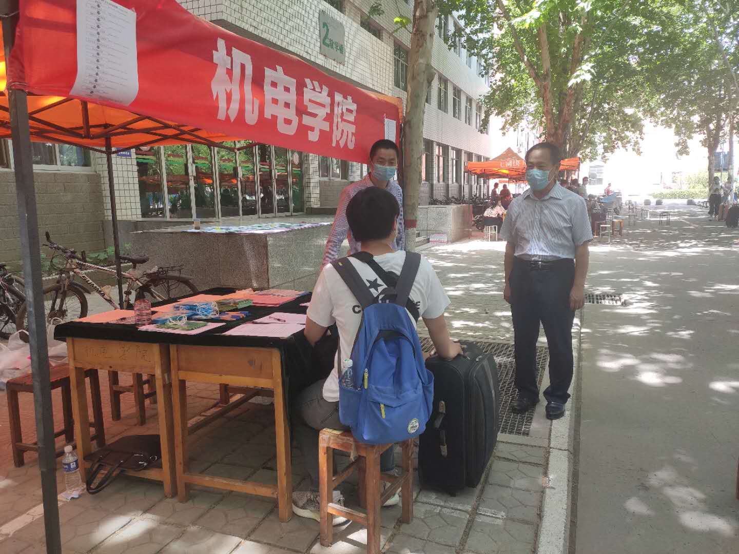 同学们分四批陆续错峰返校,每批次140余人,辅导员们各司其职,现场秩序井然。测体温、喷消毒液、核对信息、报到登记,亲切的问候、周到的服务,完善的保障措施,让返校的学子如沐春风,感受到了满满的安心和暖心。