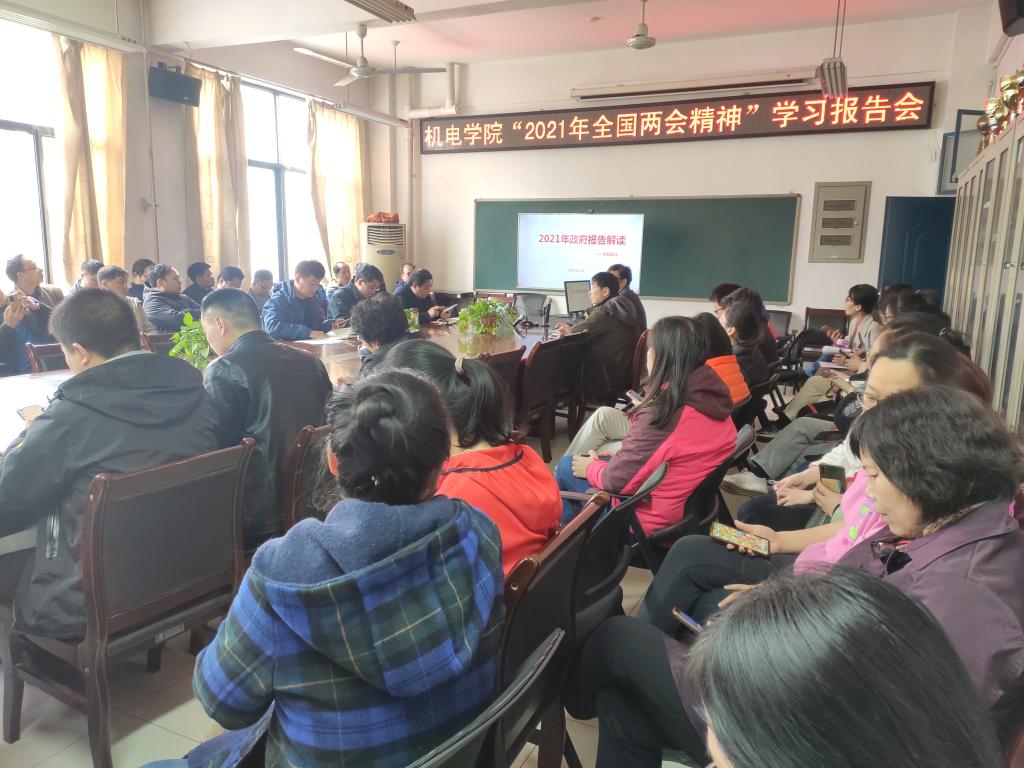 报告会上,樊跃峰以数字为主线,详细解读了政府工作报告,并结合91猫先生 实际,分享了自己学习感悟报告。同时要求,在实际教学和管理工作中应认真贯彻落实全国两会精神,进一步增强自身的使命意识和责任意识,立足本职岗位,把全国两会精神落实到推动学院事业发展的实际工作之中,以优异成绩为建党100周年献礼。