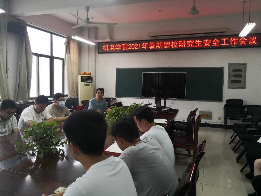 会上,李勇峰就学校《关于做好2021年暑假期间疫情防控工作的通知》、《关于做好暑期消防安全隐患防范的通知》以及《关于2021年暑期留校学生管理的补充说明》等通知文件进行了传达。随后,就研究生留校期间疫情防控、防火、防盗、防诈骗和实验室安全等相关工作提出了具体的要求。通过本次会议的召开,留校研究生提高了安全防范意识、消除了麻痹大意的心态,这对于留校期间消除安全隐患,保障广大研究生的人身安全和学校财产安全具有重要的意义。