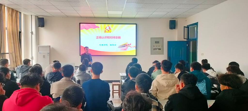 党课上,樊跃峰结合实例,从马克思主义宗教观、习近平总书记关于宗教观的重要论述、党的宗教方针政策三个方面进行了详细的讲解。特别就“全面正确地理解宗教信仰自由政策”、“共产党员和共青团员不能信仰宗教”和“禁止在校园内开展各种形式的宗教活动”等问题与大家进行了深入的交流。最后,他强调,作为入党积极分子,要认真贯彻落实习近平总书记对民族宗教工作的要求,积极引导宗教与社会主义社会相适应,拥护中国共产党的领导、拥护社会主义制度,坚持走中国特色社会主义道路,积极践行社会主义核心价值观,弘扬中华文化,为实现中华民族伟大复兴的中国梦贡献力量。