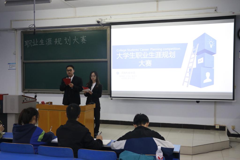 在五合二教室举行2021年大学生职业生涯规划大赛。辅导员张怀彬和团委学生会主要学生干部担任本次大赛评委。