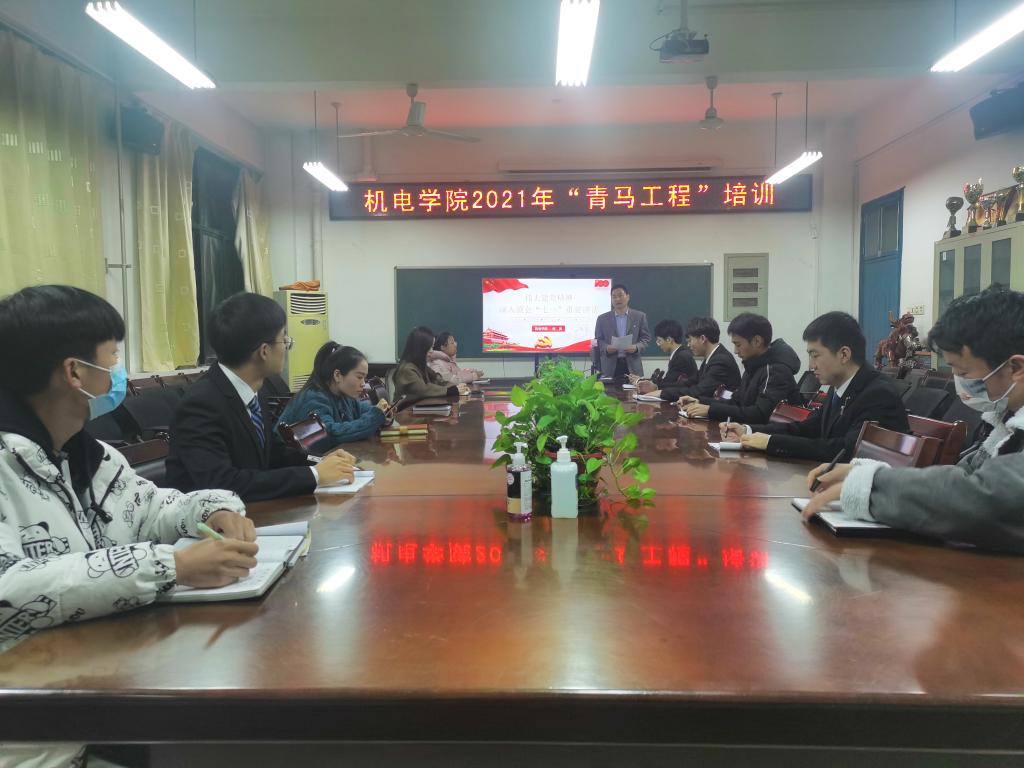 在4304会议室开展2021年“青马工程”培训,团委书记何涛、团委副书记朱佳音、辅导员胡腾允,团委学生会主席团成员和主要学生干部20余人参加了会议。