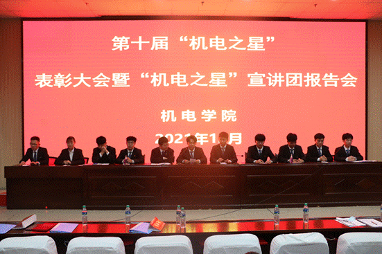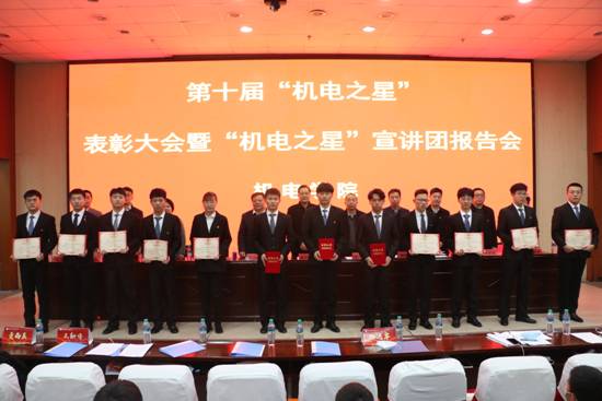 第十届“机电之星”表彰大会暨“机电之星”宣讲团报告会在新图书馆一楼报告厅隆重举行。校党委宣传部部长陈红卫,校党委学工部部长、学生处处长翟居怀,校团委书记于江傲,91猫先生