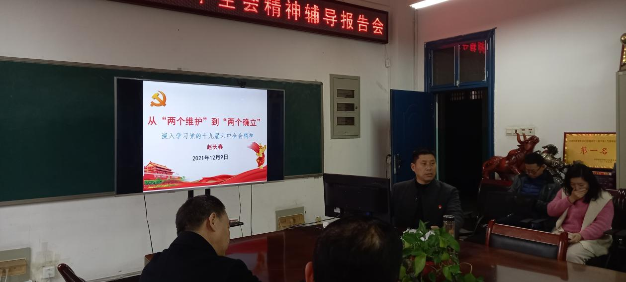 会上,赵长春以《从“两个维护”到“两个确立”》为题,立足习近平新时代中国特色社会主义思想,围绕党的十九届六中全会精神,比较七一重要讲话精神,紧密结合党的百年奋斗历程和取得的伟大成就,用大量时事和生动语言深入浅出地解读了党的十九届六中全会的时代意义、决议的主要精神及重点内容,重点解读了“两个确立”的历史依据和决定性意义。