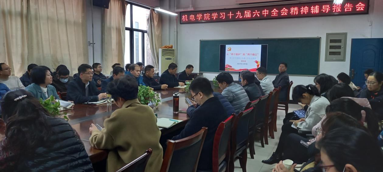全体教职工作学习党的十九届六中全会精神辅导报告会。报告会由院党委书记樊跃峰主持。