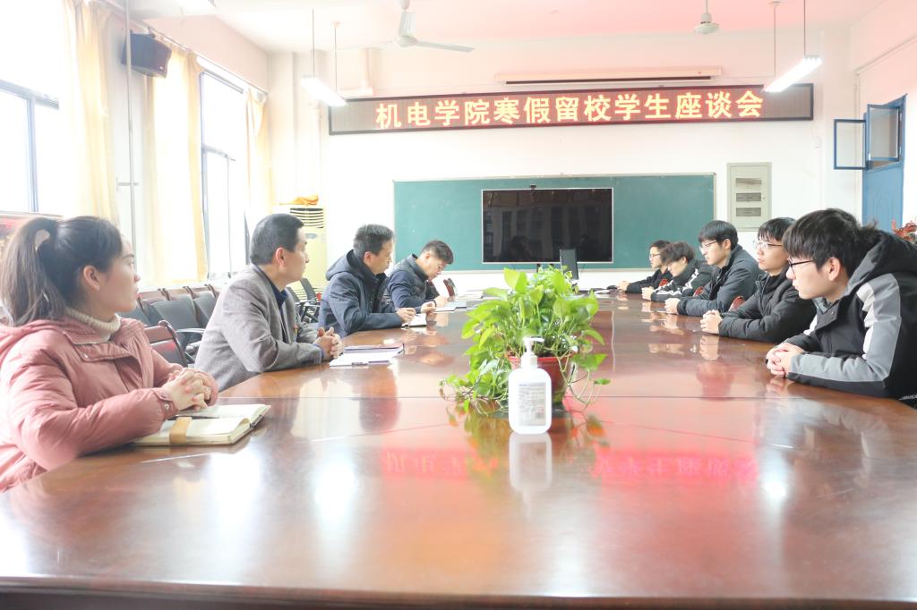在4304会议室召开寒假留校学生座谈会。院党委书记樊跃峰、党委副书记李印、辅导员张怀彬、胡腾允和留校学生参加座谈会。会议由院团委书记何涛主持。