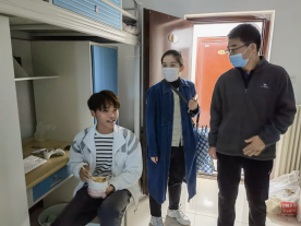 党政领导班子全体成员在辅导员的陪同下深入走访新生宿舍。