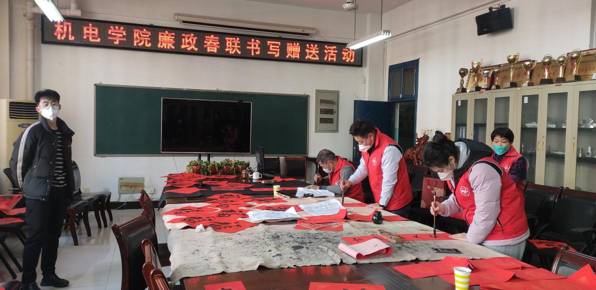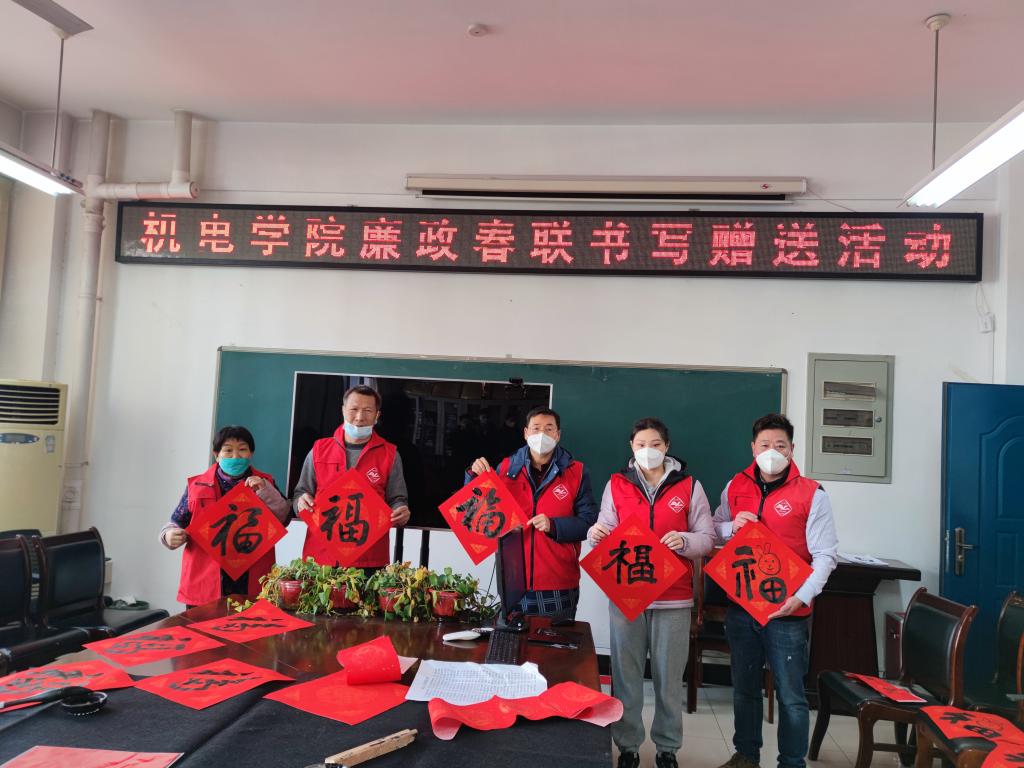 联合校书画协会在学院4304会议室开展了为党员干部和教职工送廉政春联活动。