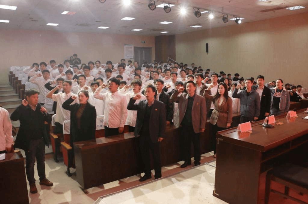 李印宣读了参加宣誓仪式的新党员名单并提出了宣誓要求。“我志愿加入中国共产党,拥护党的纲领,遵守党的章程,履行党员义务”59名新党员在领誓人的带领下进行集体宣誓,新党员面向党旗,举起右手,跟随领誓人,庄严地向党旗宣誓,表达对党的忠诚、为共产主义奋斗终身的决心!