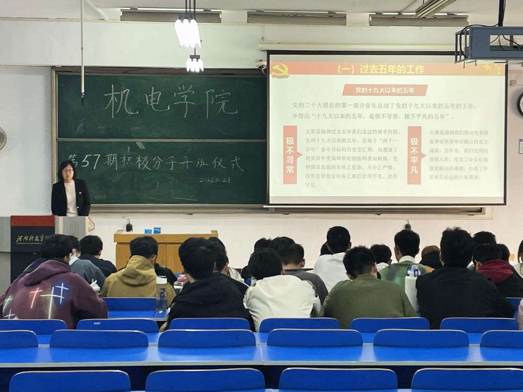 仪式结束后,张雅凌以“新时代 新征程 学习贯彻党的二十大精神”为主题作了首场报告,她嘱咐所有入党积极分子要认真学习党的二十大精神,努力成为听党话、跟党走、有理想、有本领、有作为的新时代高素质人才,为91猫先生