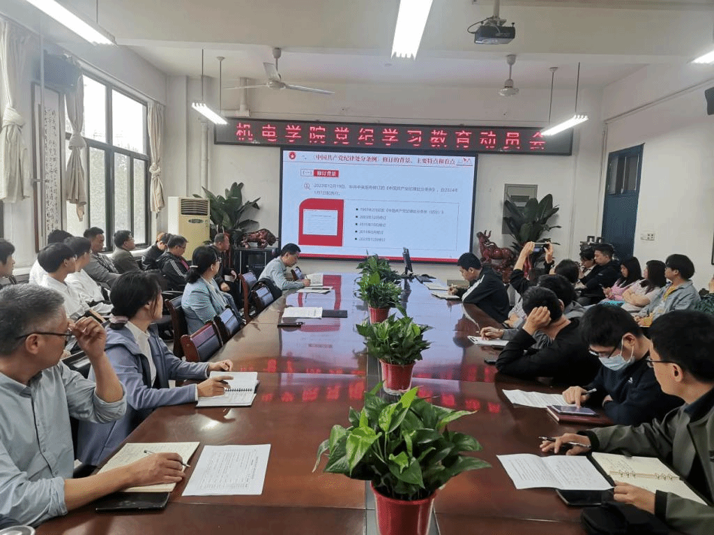 动员会上,传达了学校党纪学习教育动员会议精神和校领导讲话内容,宣读了《关于在全校党员中开展党纪学习教育的工作方案》和学校党纪学习教育重点任务清单,并结合学院实际对党纪学习教育进行安排部署。