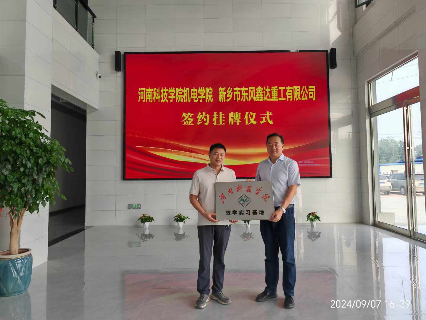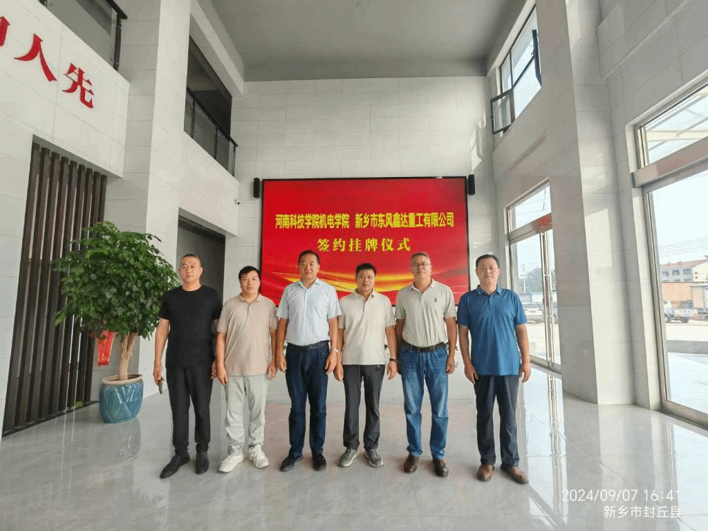 院长聂福全一行四人,实地考察走访了新乡市东风鑫达重工有限公司,与企业负责人就推进产学研合作进行座谈交流并进行了大学生实习基地签约授牌仪式,新乡市东风鑫达重工有限公司董事长王守忠,副总经理黄长周参加了座谈。