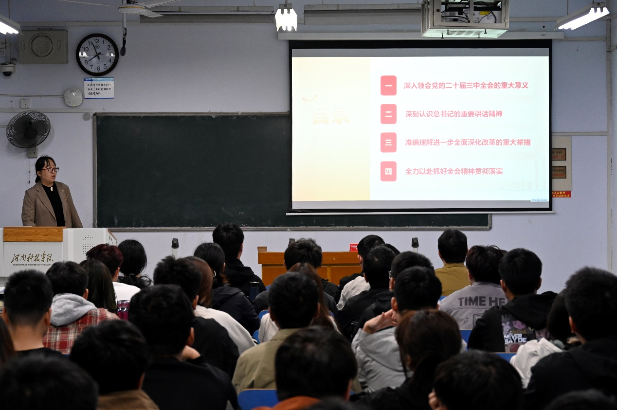 开班仪式结束后,党委书记张雅凌以“凝聚深化改革共识,积蓄青春奋斗力量”为题作党课第一讲。她围绕党的二十届三中全会的重大意义、总书记的重要讲话精神、进一步全面深化改革的重大举措、全会精神贯彻落实四个方面展开深入探讨。她鼓励同学们要认真学习领会党的二十届三中全会精神,始终谨记党和国家的殷殷嘱托,提升政治素养,锤炼个人品性,坚毅前行,用智慧和汗水谱写不负时代、不负韶华的青春诗篇。