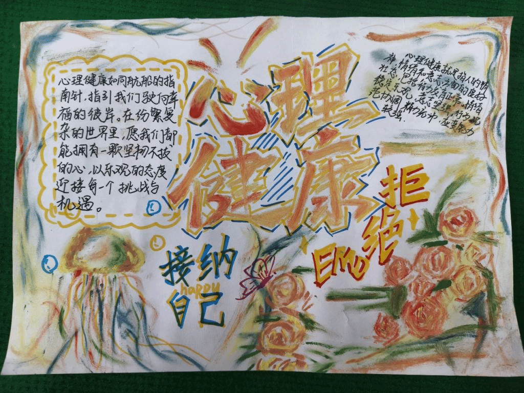 “心理健康教育宣传月”手抄报大赛的顺利举办,不仅展示了新时代大学生的精神风貌,也营造了学院健康文明、积极阳光的良好氛围,更增强了同学们对心理健康问题的关注和认识,促进了心理健康知识的普及,帮助同学们正确了解自我、悦纳自我。