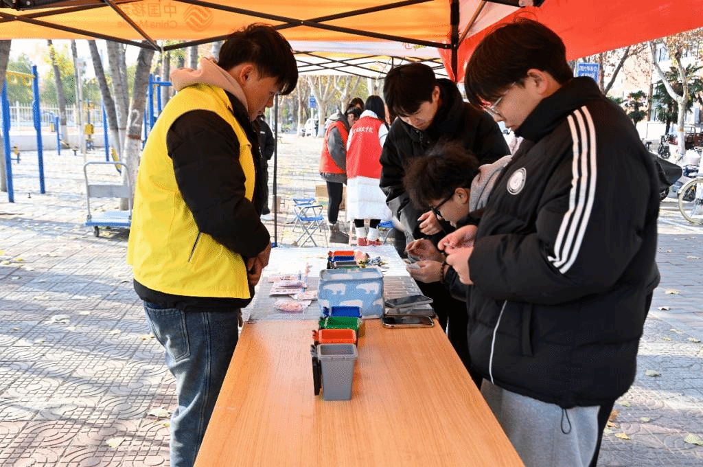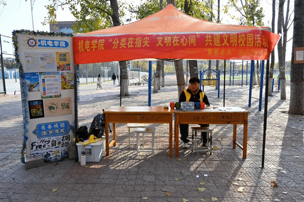 活动正式开始之前,青协服务部志愿者们早早到达活动现场,将帐篷、桌凳、院旗、横幅进行布置,并把提前准备好的道具垃圾桶、道具垃圾卡片摆放到位,为迎接同学们参加活动提前做好准备。不多久,围观的同学们陆续参与进来。活动以模拟垃圾分类投递的形式开展,志愿者们纷纷化身环保宣传大使,热情地指引同学们有序参与游戏,参与的同学们全神贯注、热情高涨,同学们仔细甄别手中卡片上标注的垃圾名称,谨慎地将卡片投放到对应的垃圾桶模型中,沉浸式体验垃圾分类实操流程,现场氛围既紧张又充满乐趣。