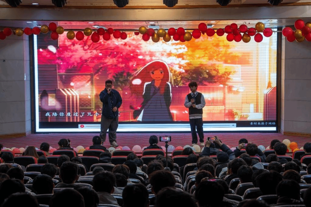 晚会中播放了团委学生会各部门特意录制的新年祝福视频,现场洋溢着温暖又感人的浓情氛围。