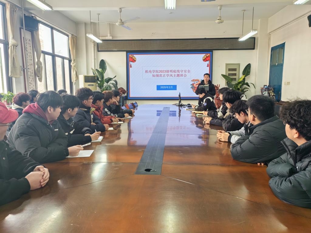 以班级为单位有序组织开展了“明底线守安全,知规范正学风”开学第一课主题班会。班会由团委辅导员和各班班主任在教室组织召开。