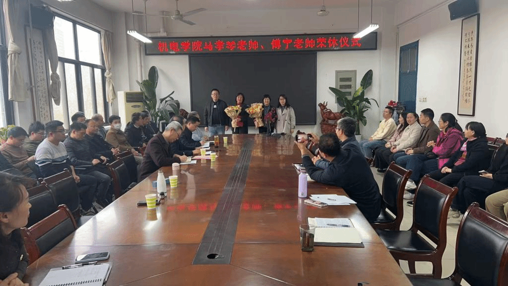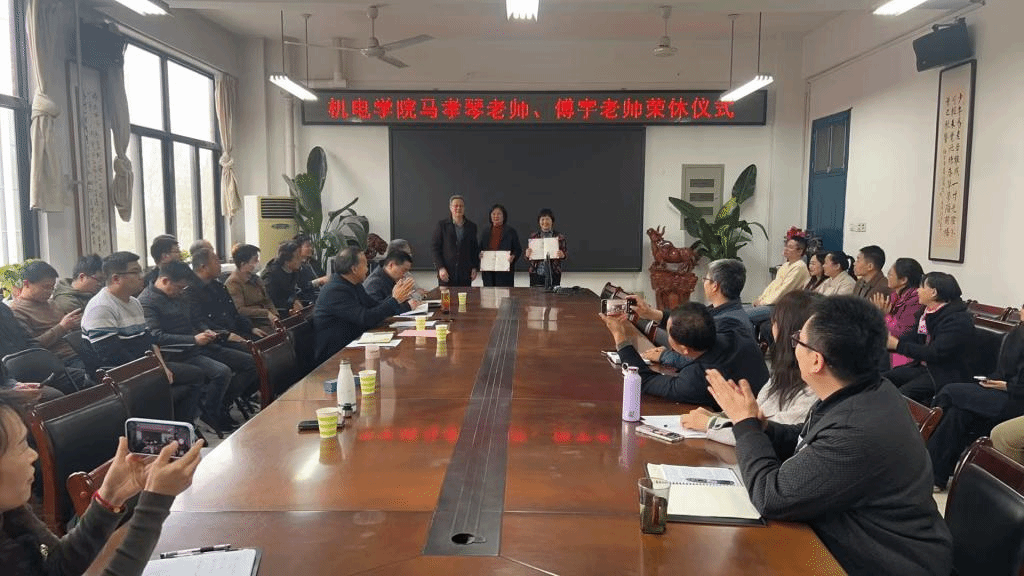 马金友为两位教授颁发荣休证书,代表学校向她们致以崇高敬意。他在致辞中指出,两位教授用毕生心血诠释了“师者如光”的真谛,是立德树人的典范,并勉励青年教师要传承好“爱生如子、厚德载物”的机电教师精神,为学校事业发展接续奋斗。致辞最后,他向两位教授退休后的生活送上诚挚祝福,祝愿她们幸福安康、生活美满。