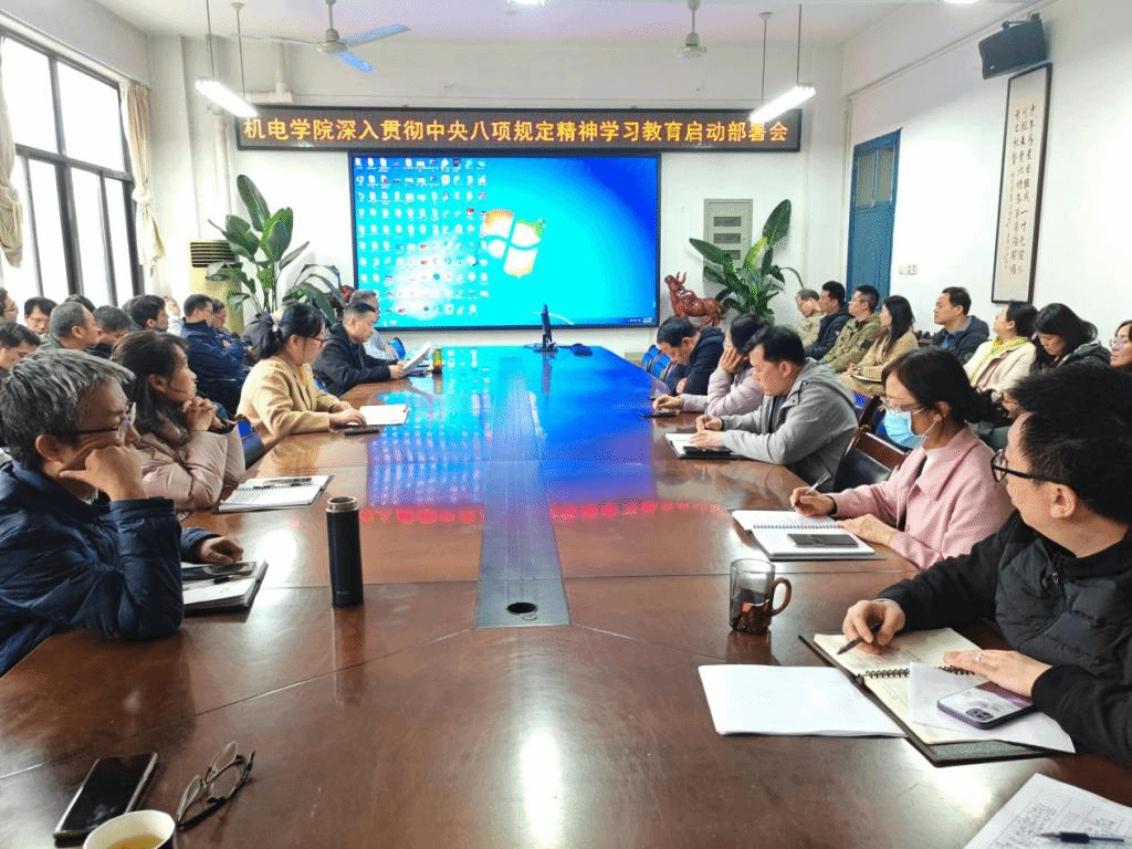 在学院4304会议室召开深入贯彻中央八项规定精神学习教育启动部署会。学院党政班子成员和全体教职工参加会议。会议由学院党委书记张雅凌主持。