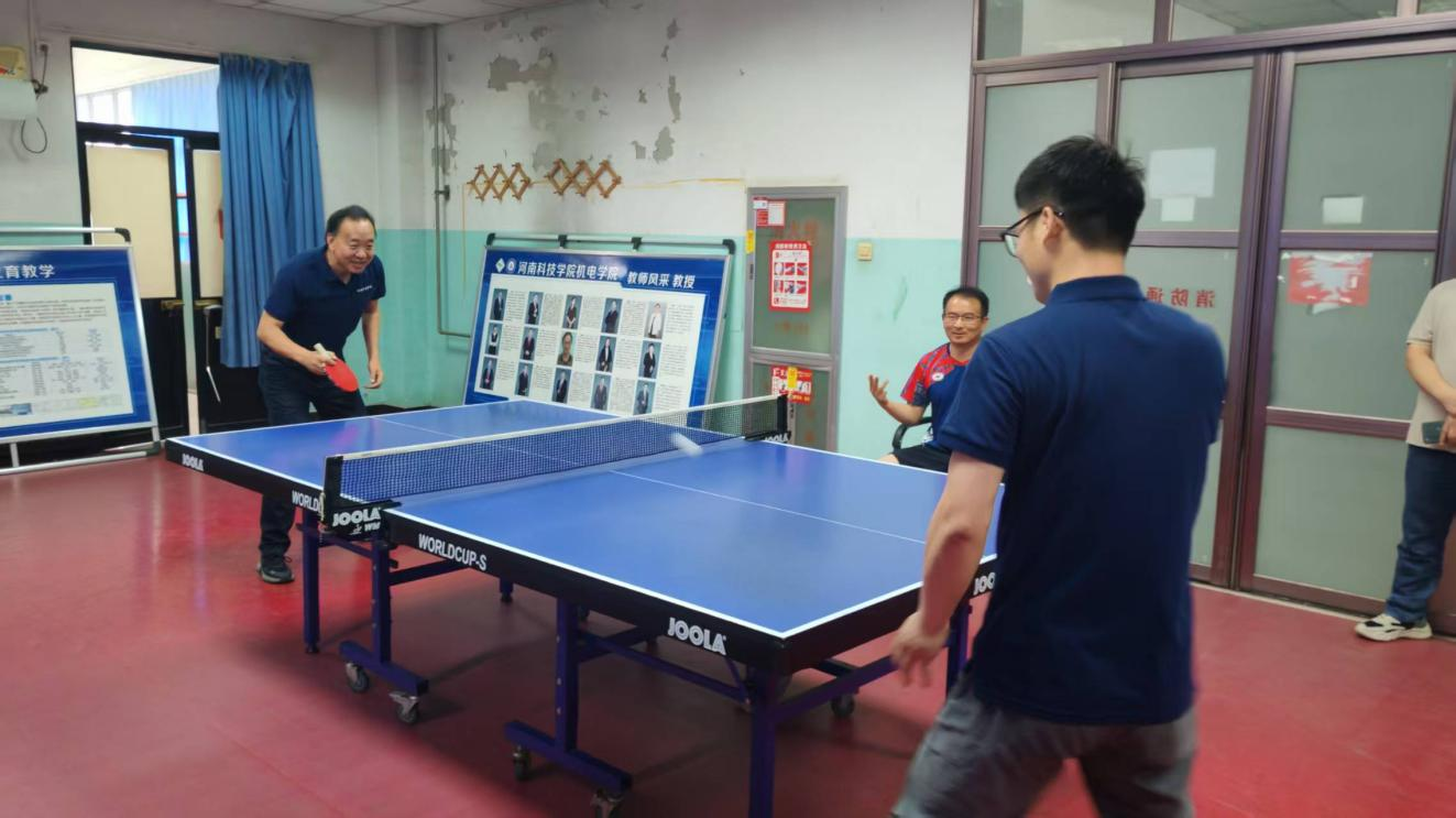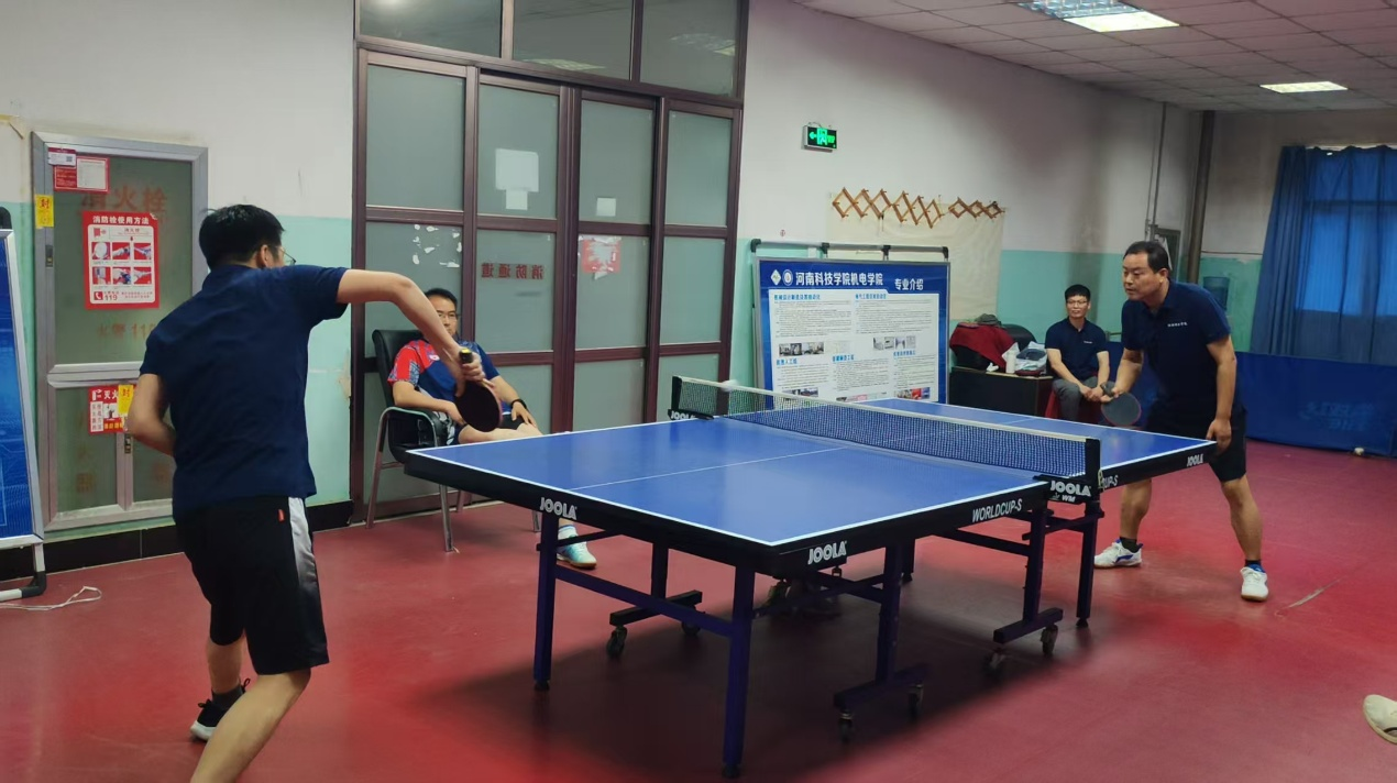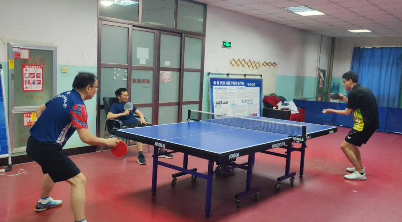 教职工娴熟的乒乓球技术和良好的精神风貌。