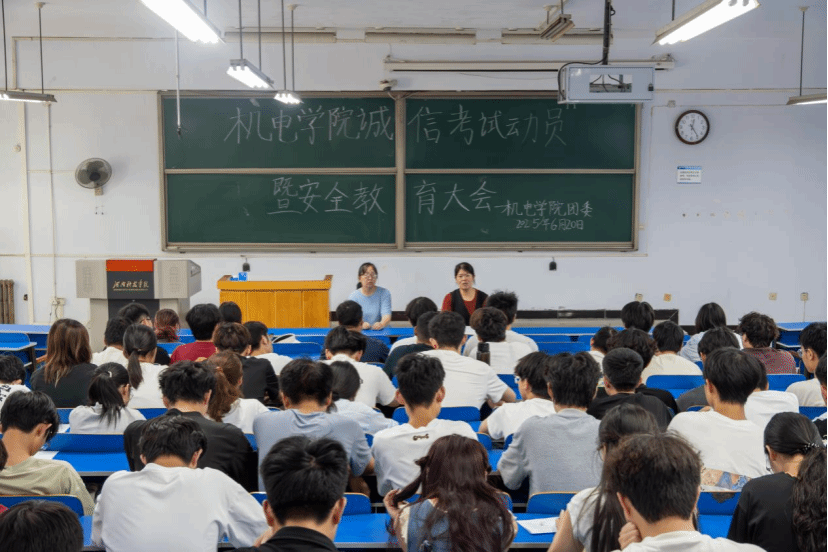 在四号教学楼合二教室召开了诚信考试动员会议暨暑期安全教育大会。会议按年级分批次开展,学院党政领导分别参加了会议。