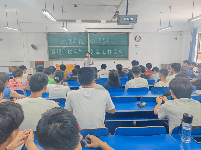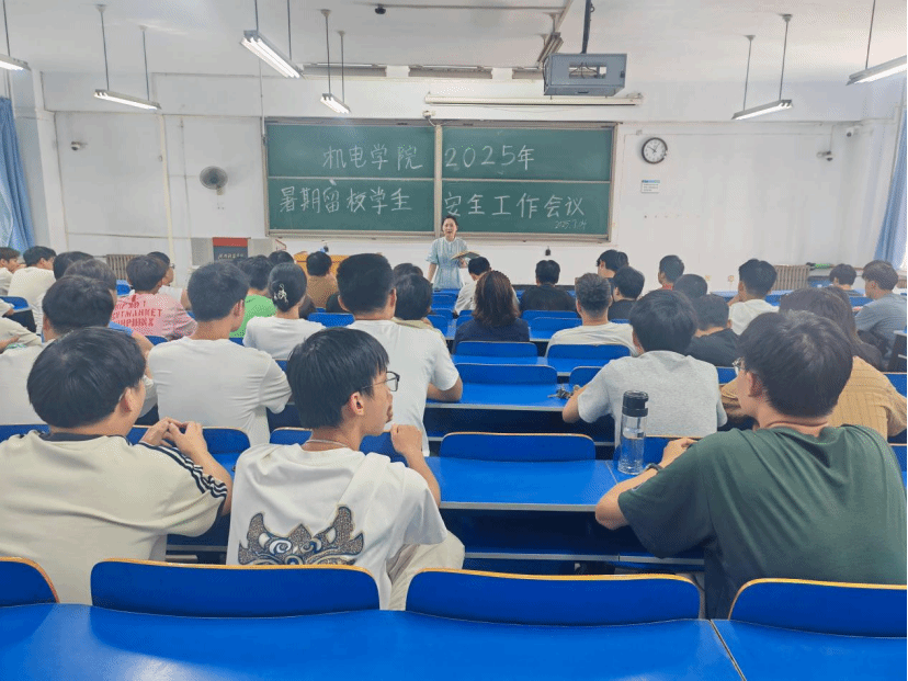 在4号楼合二教室召开暑期留校学生安全教育大会,院党委副书记何涛和全体留校学生参加了会议。会议由正科级辅导员侯怡主持。