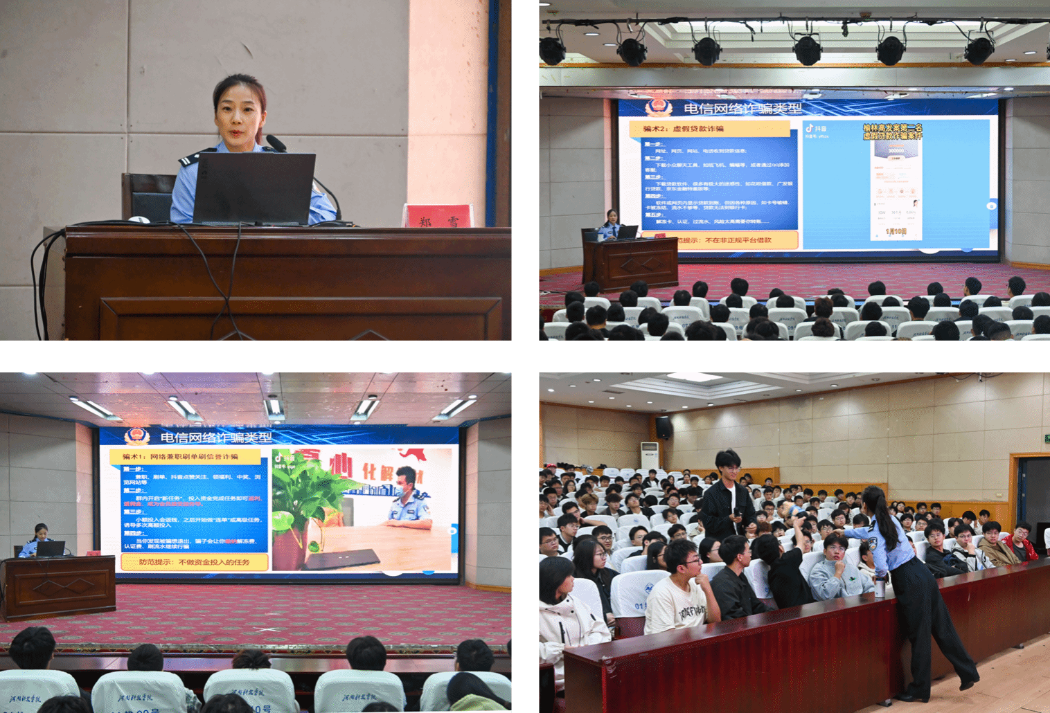9月23日,学院特邀新乡市公安局红旗分局郑雪警官为2025级新生开展“防范电信网络犯罪”专题报告。郑雪警官围绕电信网络诈骗的定义特征、当前形势、常见类型及防范对策,系统剖析了新型电信网络犯罪的特点与危害。她结合近年来高校高发的“刷单返利”“游戏账号交易”“冒充客服退款”“虚假校园贷”等典型案例,以通俗生动的语言层层拆解诈骗分子的作案手法与心理操控技巧。报告中,郑警官重点提出“五不一打”防骗法则——未知链接不点、冒充公检法不怕、转账指令不信、高额返利不贪、未经核实不转账,遇到问题第一时间拨打报警电话,引导同学们牢固树立财产安全意识,增强识诈、防诈能力。
