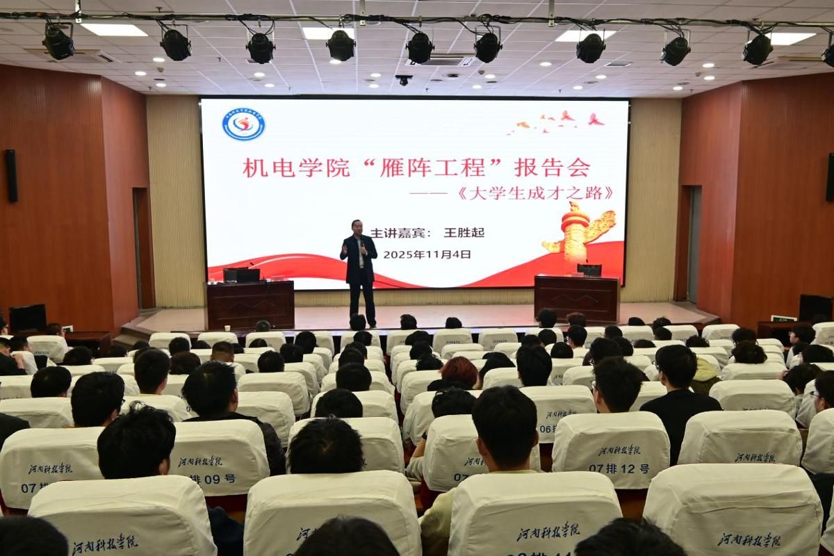 会议伊始,王胜起博士首先剖析了当下的时代方位,并明确指出,新时代呼唤的并非“精致的利己主义者”或“死记硬背的考试机器”,而是有理想、有担当的奋斗者,有本领、会创新的实干家。随后,王胜起博士围绕成长之核、行动路径和星辰大海三个方面展开系统性阐述,提出理想信念、实践能力、创新精神、核心价值观四大成才支柱,强调忠诚品格、文化自信、终身学习等关键素养,给出“惜时阅读、勇于表达、协作涵养”的具体行动路线,勉励机电学子主动对接国家十大战略、九大行业、六大产业,将个人奋斗融入时代洪流。