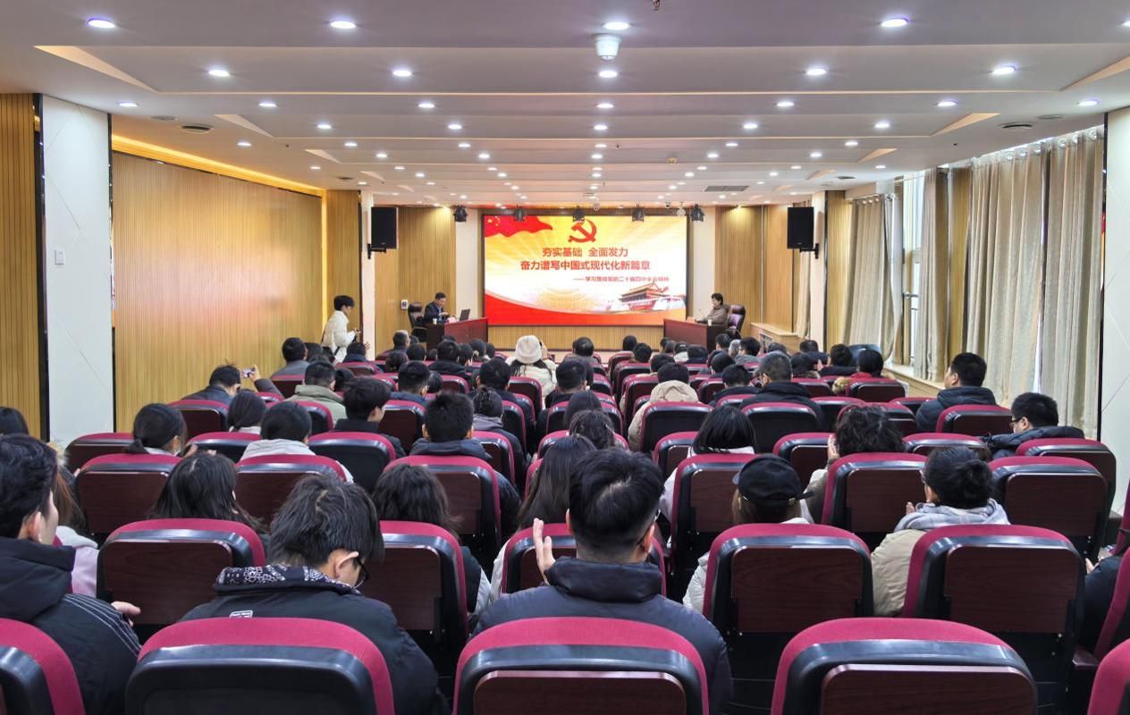 首先,我校马克思主义学院党委副书记刘中元作宣讲报告,报告由食品学院党委书记陈腾主持。报告会上,刘中元以《夯实基础 全面发力 奋力谱写中国式现代化新篇章》为题,从党的二十届四中全会的重大意义、“十五五”时期在社会主义现代化进程中的重要地位、“十五五”时期经济社会发展的指导方针和主要目标、战略任务和重大举措、实现“十五五”时期经济社会发展目标的根本保证等五个方面,对党的二十届四中全会精神作了深入阐释和系统解读。陈腾在总结中指出,全体师生党员要深学细悟、凝心聚力,切实把党的二十届四中全会精神转化为推动教学科研、人才培养的实际行动,以实干担当谱写高质量发展新篇章。