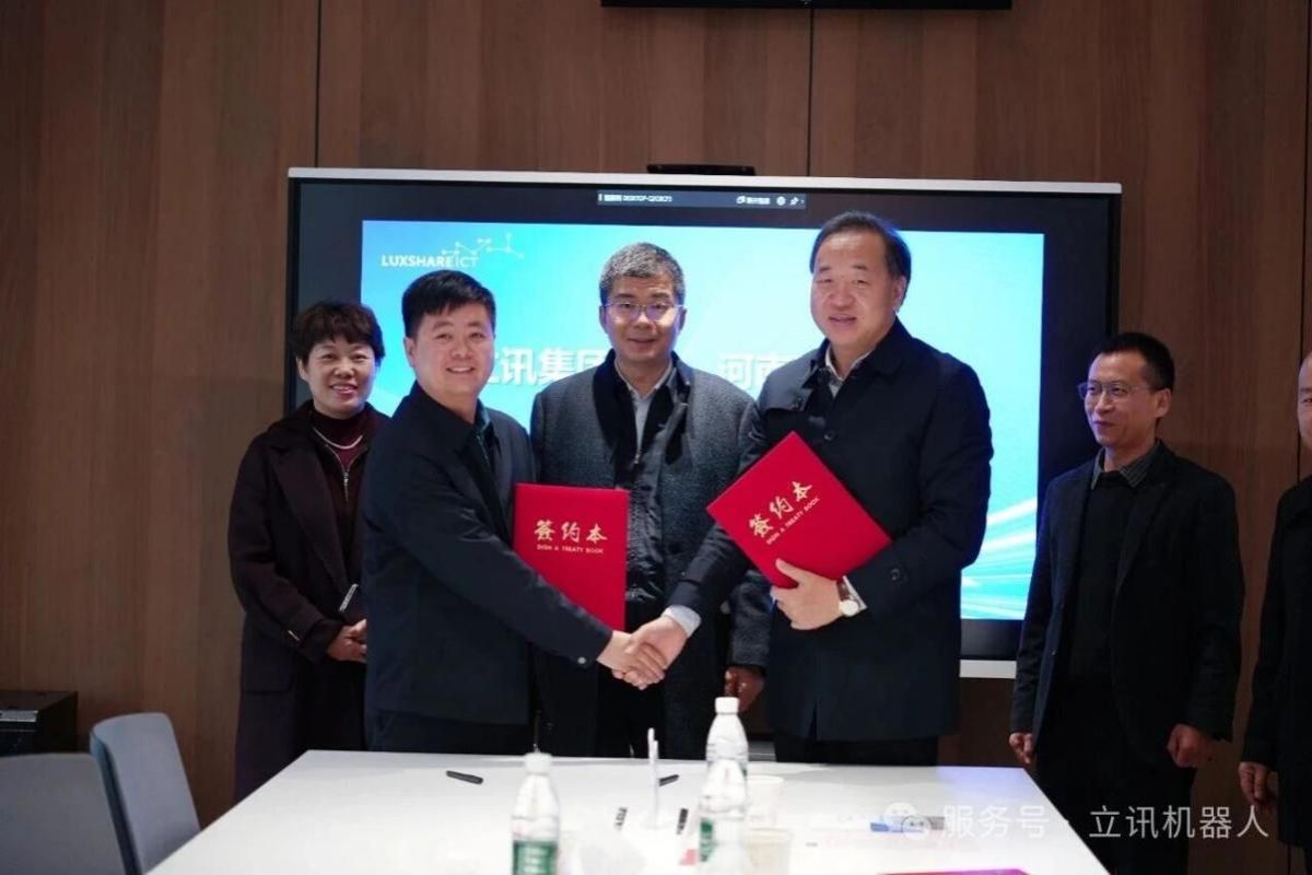与立讯精密智能制造产业学院签署本硕博联合培养协议。河南省科技厅人才处处长宋晖、立讯集团校企合作部经理汪宝峰等参加签约会议,标志着政企校协同育人步入新阶段。