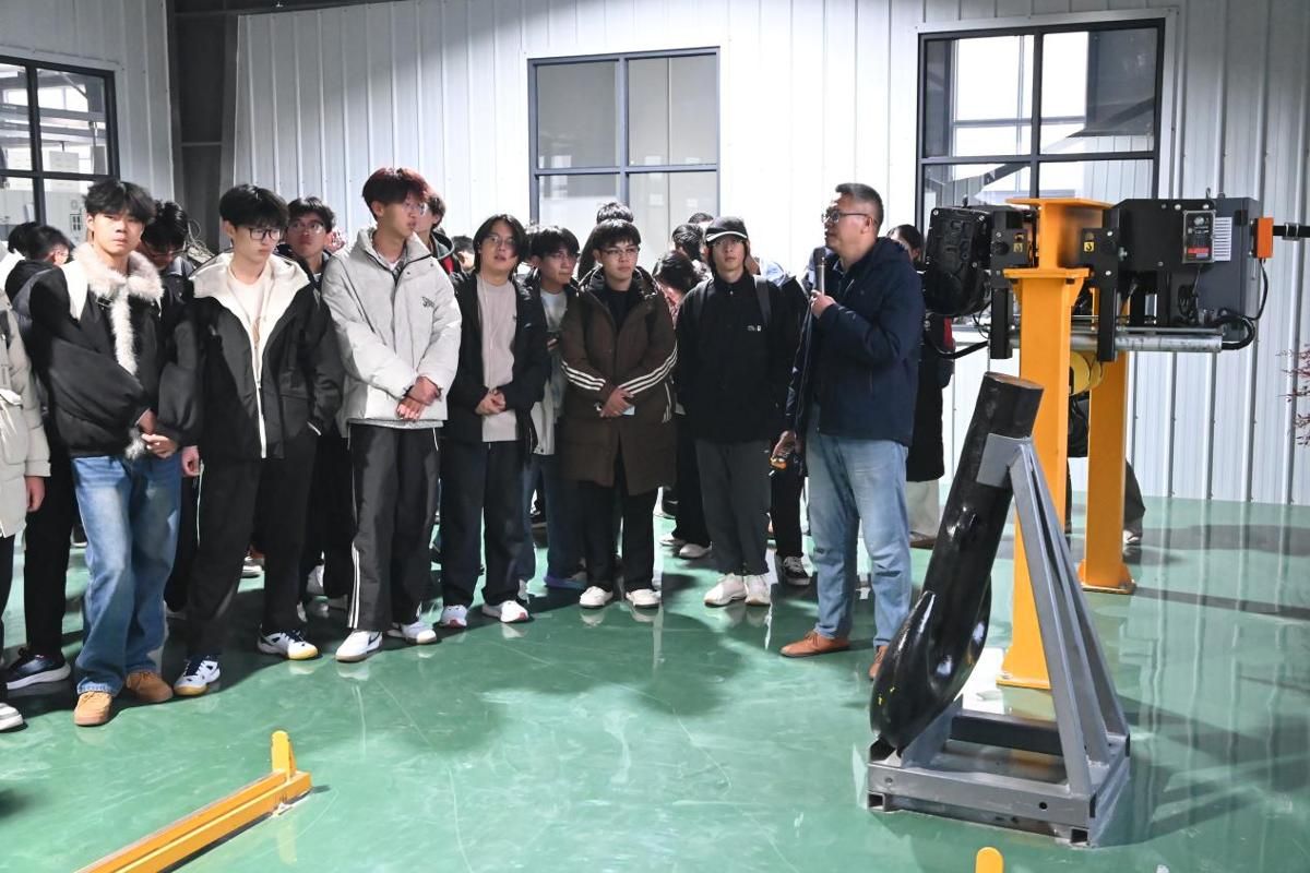 杨文强表示,该创新中心于2025年9月正式落成,总占地面积约1700平方米,配备各类设备90余台,设备原值共计1800余万元。中心主要围绕高端起重物流装备、智能制造与精密加工、智慧电力系统、食品装备制造、机器人控制等方向,承担科研攻关与实践教学任务。讲解过程中,杨文强逐一详细介绍了起重机防摇摆系统、轻量化门式起重机科研平台、智能制造自动化生产线、工业机器人实训台、智慧配电系统、机电一体化智慧教学系统、食品加工自动化装备等核心软硬件设备。他勉励在场同学:要筑牢专业基础,深耕理论前沿;坚持实训为要,精研设备操作。在理论与实践的耦合中迭代能力,在知识与技能的融合中锻造本领,最终实现从认知到能力的系统化提升,成为一名能解决复杂工程问题的高素质工程技术人才。