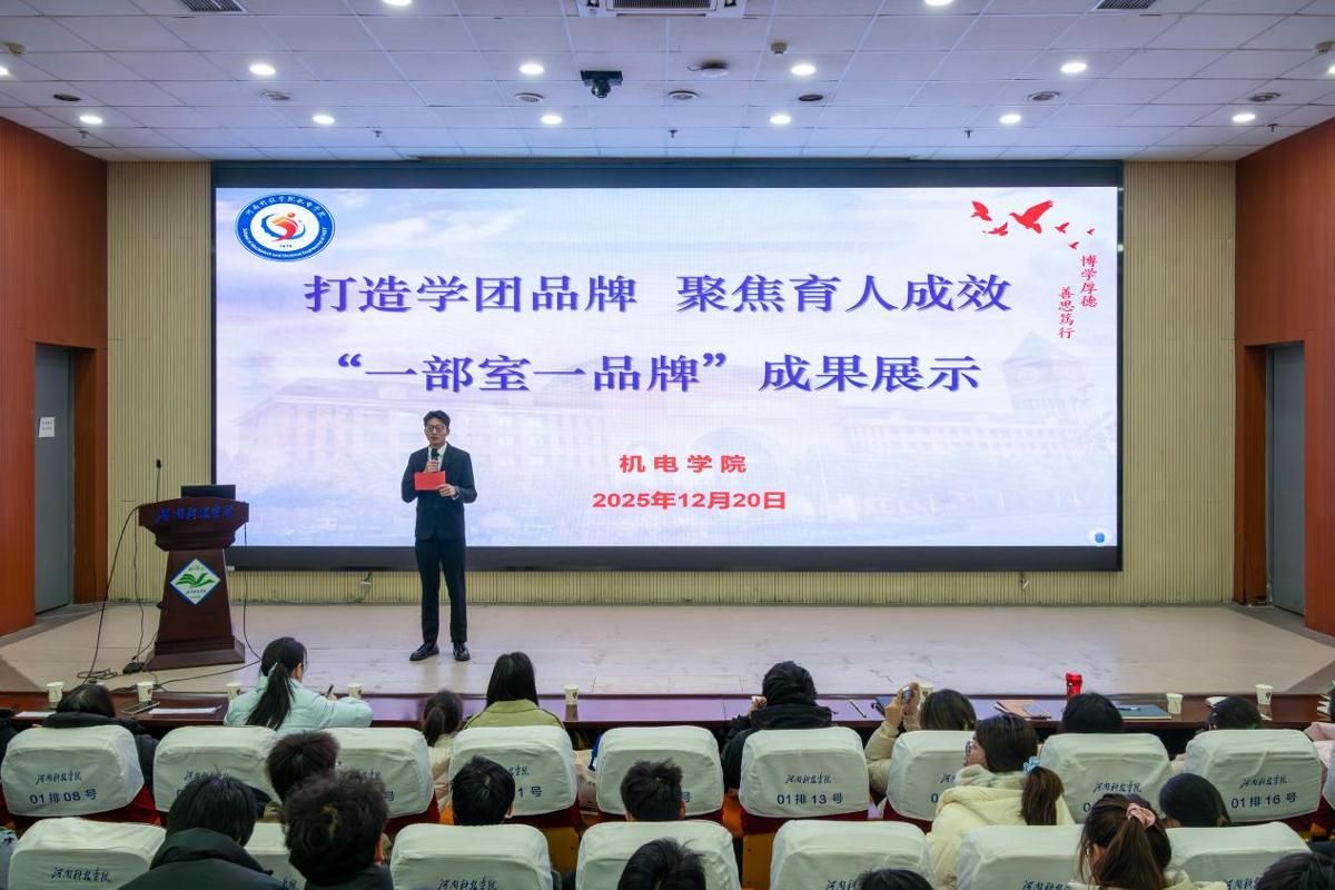 在图书馆一楼报告厅举办“打造学团品牌 聚焦育人成效”一部室一品牌学团工作成果展示,全体辅导员、2025届团委学生会主席团、各部室成员参加了会议。
