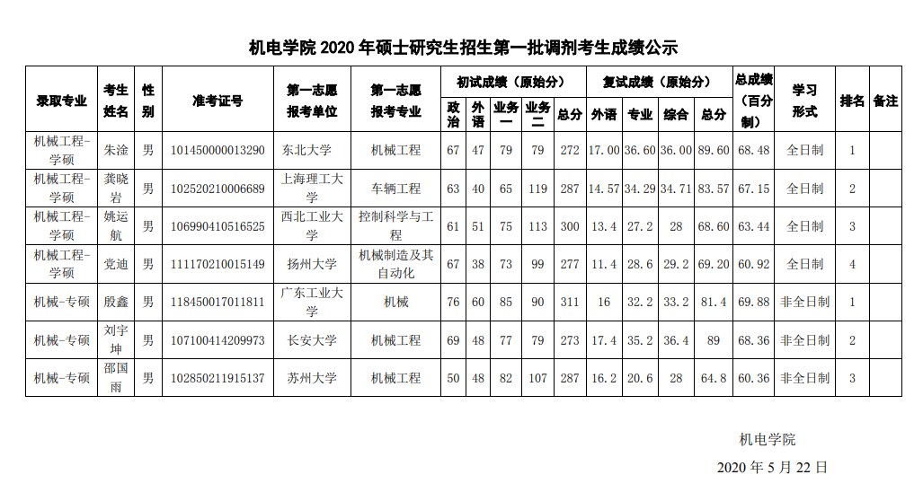 91猫先生 2020年硕士研究生招生第一批调剂考生成绩公示