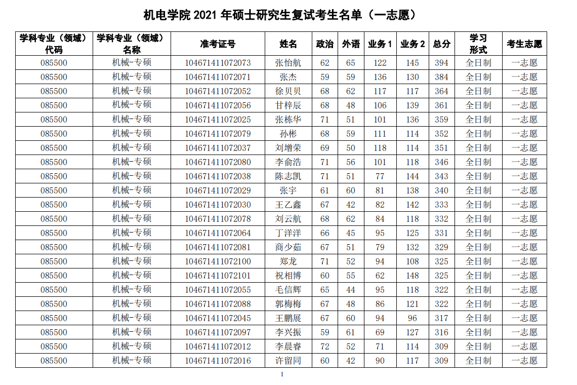 91猫先生 2021年硕士研究生复试考生名单(一志愿)
