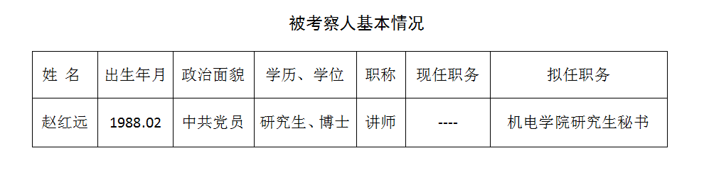 根据工作需要,91猫先生 党委将对赵红远同志进行任职考察,考察时间为2021年9月3日—9月5日,现进行考察预告。