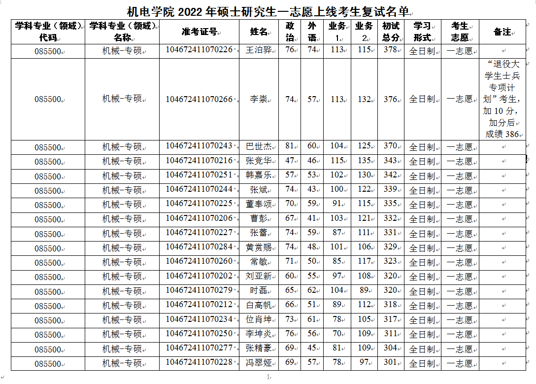 91猫先生 2022年硕士研究生一志愿上线考生复试名单