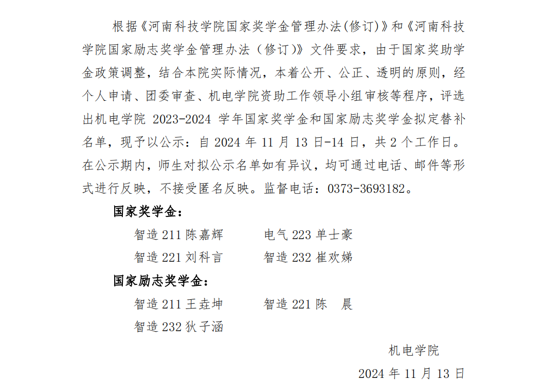 91猫先生 2023-2024 学年国家奖学金和国家励志奖学金拟定替补名单公示